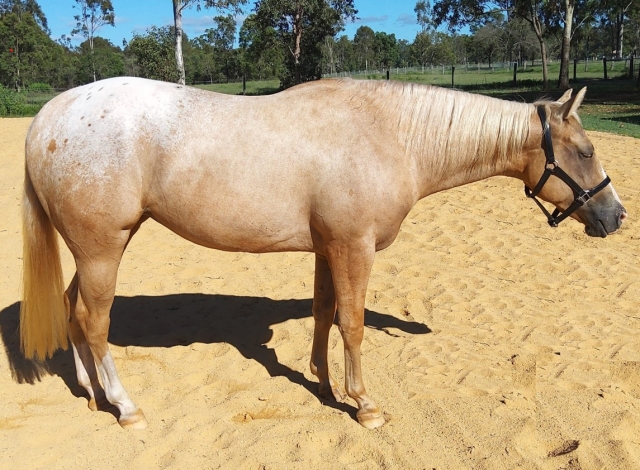 Harry Hotspur is a unique buckskin blanketed Sportaloosa (Appaloosa sport horse) gelding located in Queensland, Australia.